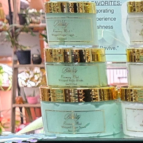 Enhance your senses and skin with Rosemary Mint Whipped Sugar Scrub. Made from vegan ingredients, this sugar scrub is never tested on animals. Perfect for those who appreciate cruelty-free beauty.